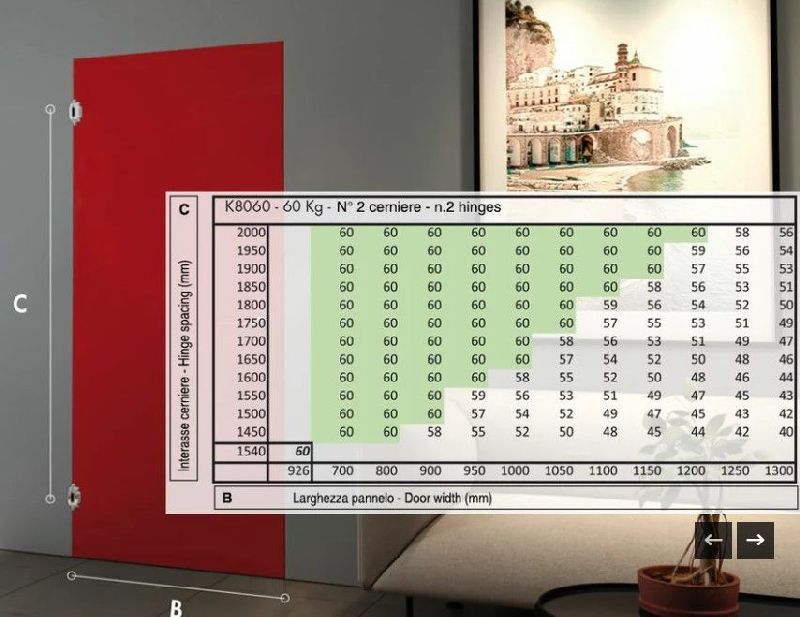 IVA incluido- Máxima capacidad: 60kg (2 bisagras)