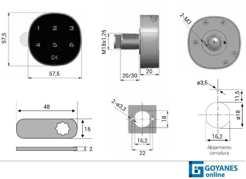 Cerradura taquilla electrónica teclado PUCK 58x58