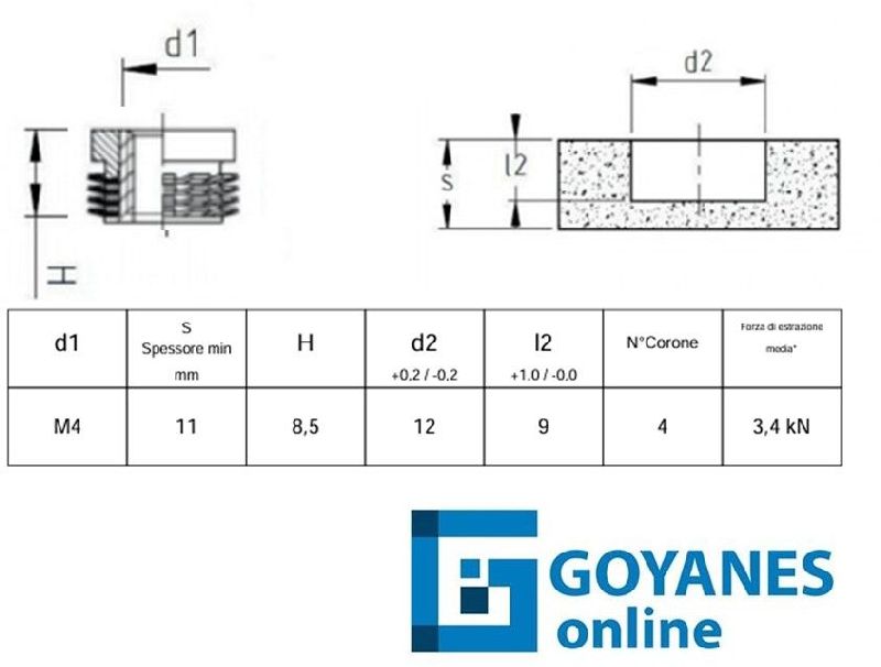 Inserto compacto/solid 4 coronas M4x8,5 d12mm P.9