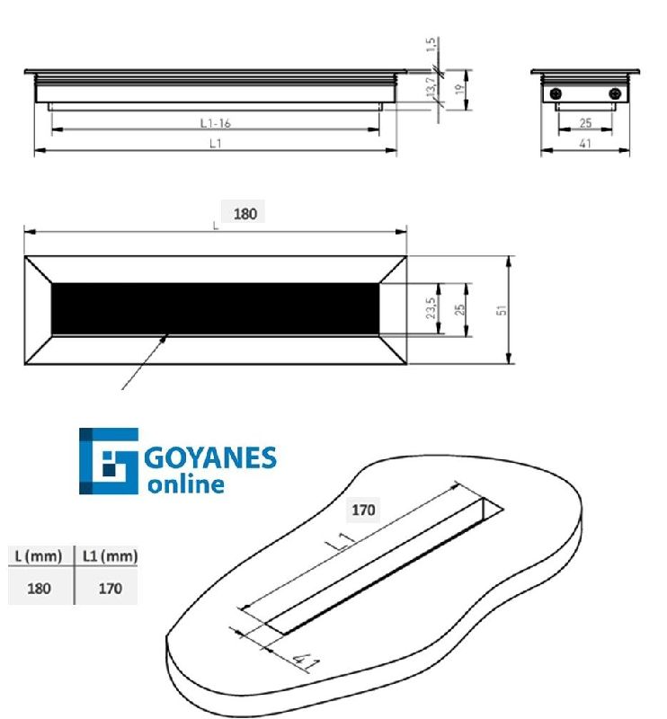 Medida exterior 180x51mm